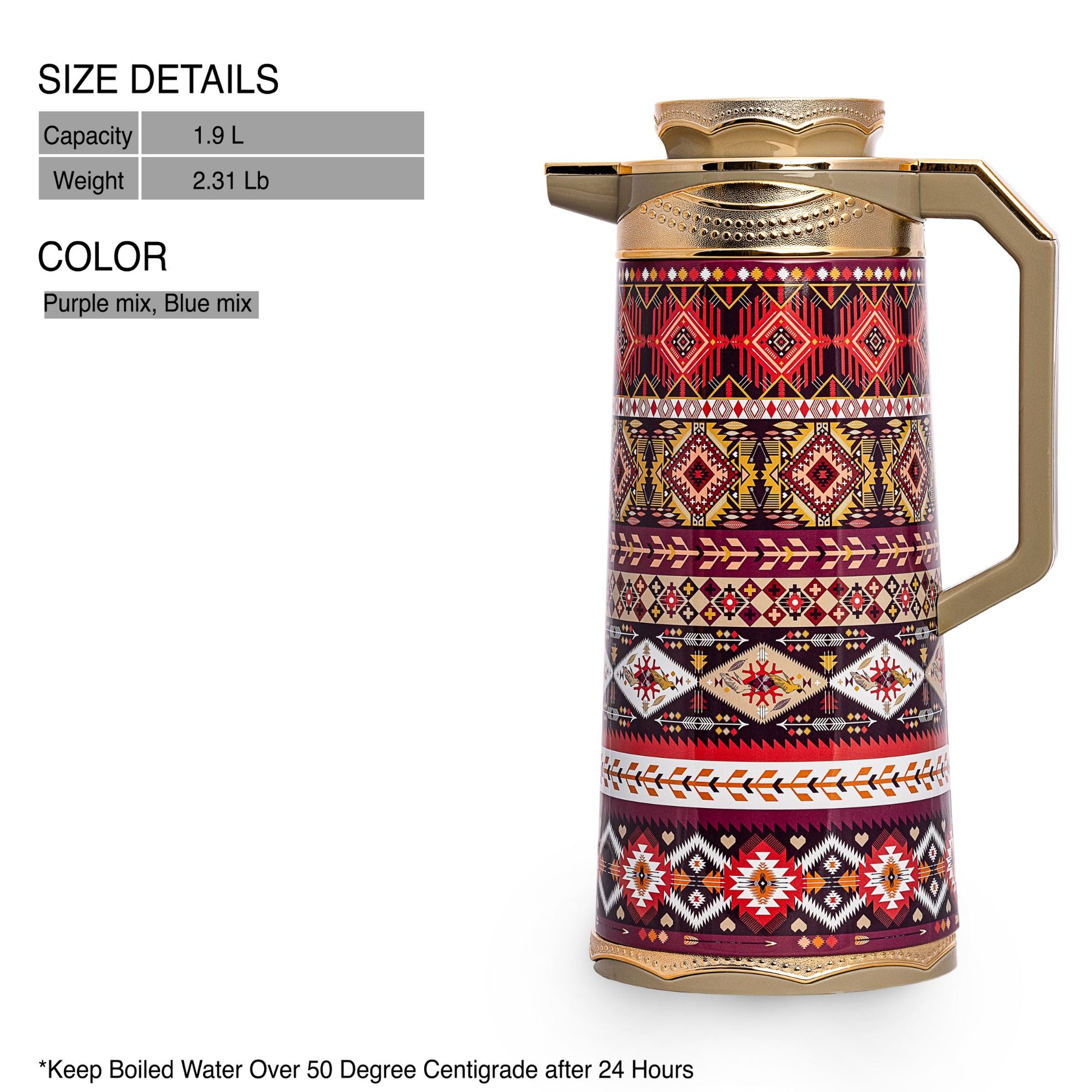 The carafe has a capacity of 1.9 liters so you can carry enough for the whole day. Its wide-mouth opening makes refilling and cleaning a breeze, and the air tight lid ensures that your beverages stay secure and fresh. Our thermos comes with an outer handle that lets you easily carry it with you wherever you go.