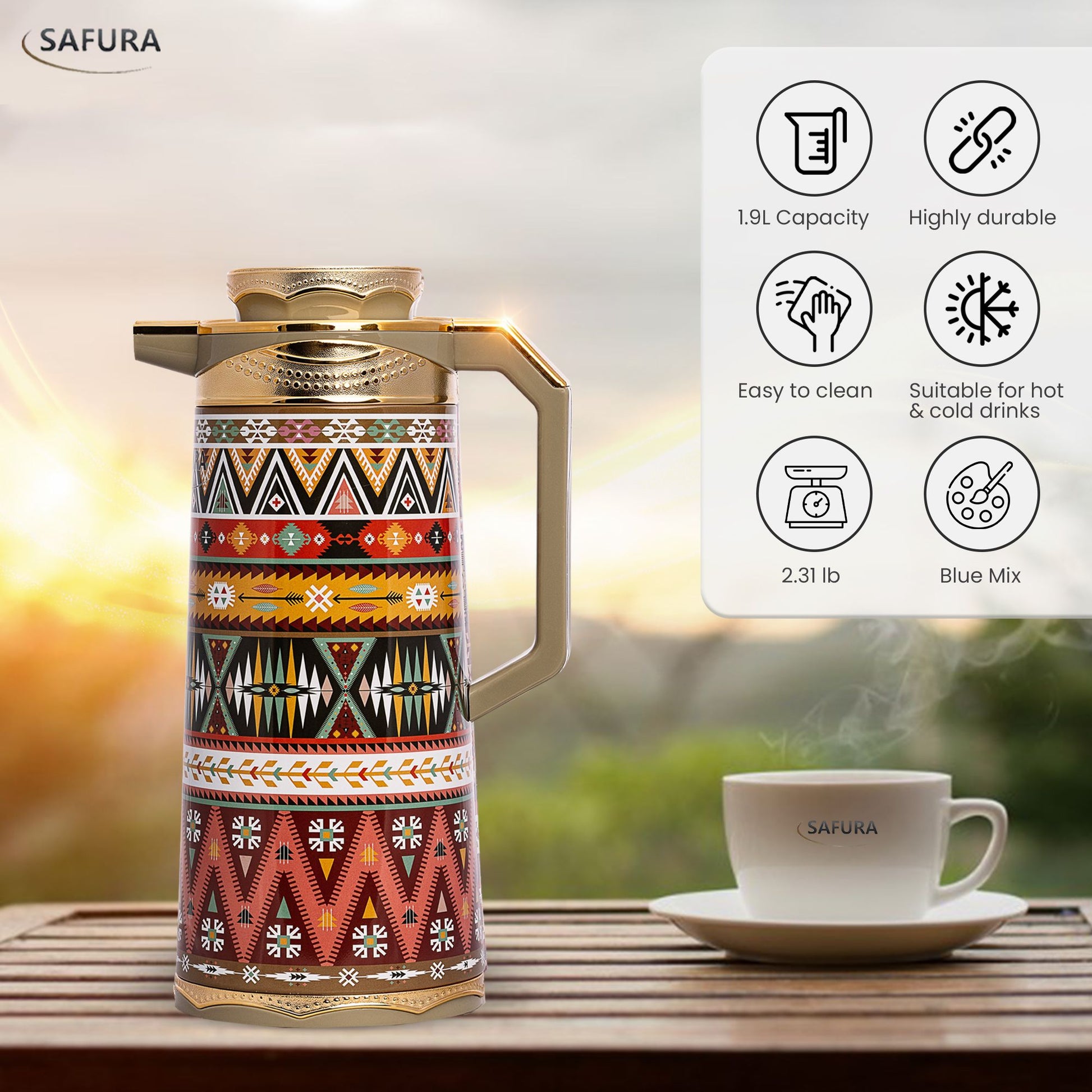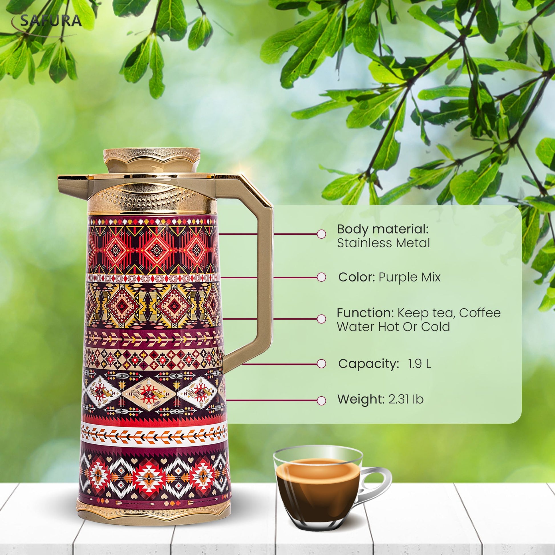 COFFEE THERMOS CARAFE – Enjoy piping hot coffee or a chilled iced tea all day with the SAFURA stainless steel thermos coffee. It comes with a generous capacity of 1.9 liters making it the perfect insulated flask to suit your needs throughout the day